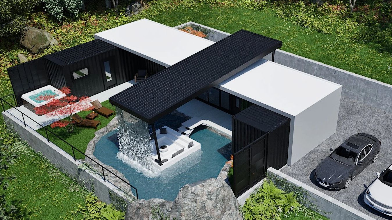 Container 3 will have 2 bedrooms, 2 bathrooms, a full kitchen, living area and a separate 20 foot container space dedicated to well being with a cold plunge, salt room, and sauna.